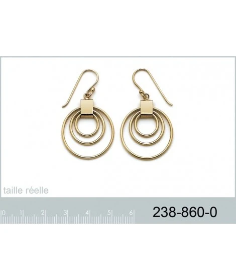 Boucles d’oreilles plaquĂ©es or garanties 10 ans. Triple anneau, pendantes. Diamètre : 25 mm. Hauteur totale : 46 mm. LivrĂ©es dans leur jolie pochette organza.