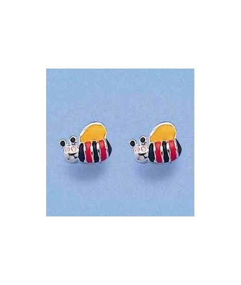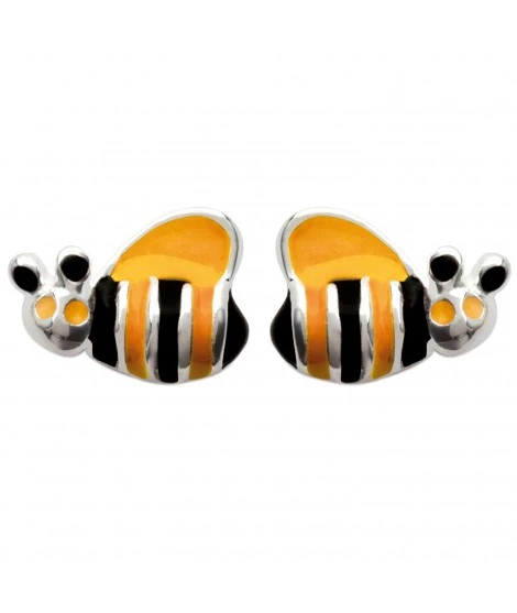 Paire de boucles d’oreilles « abeilles » en argent 925/000 et Ă©mail de couleur. Poids : 1,40 grammes. Taille : 8 x 8 mm.