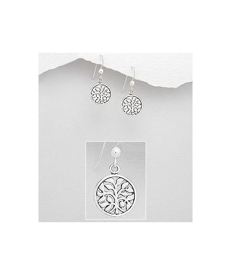 Boucles d’oreilles pendantes, en argent 925/000, collection arbre de vie, symbole de force et de vie. Diamètre : 12 mm. Hauteur : 27 mm. Poids d’argent : 1,40 gramme. LivrĂ©es dans leur jolie pochette organza.