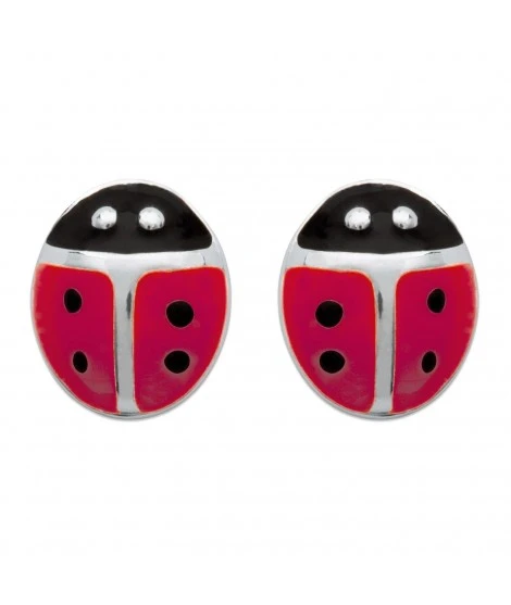 Boucles d’oreilles « coccinelle » en argent 925/000 et Ă©mail. Fermoir tige/poussette. Longueur : 6 mm. Largeur : 5 mm. Poids d’argent : 0,46 gramme. LivrĂ©es dans leur jolie pochette en organza.
