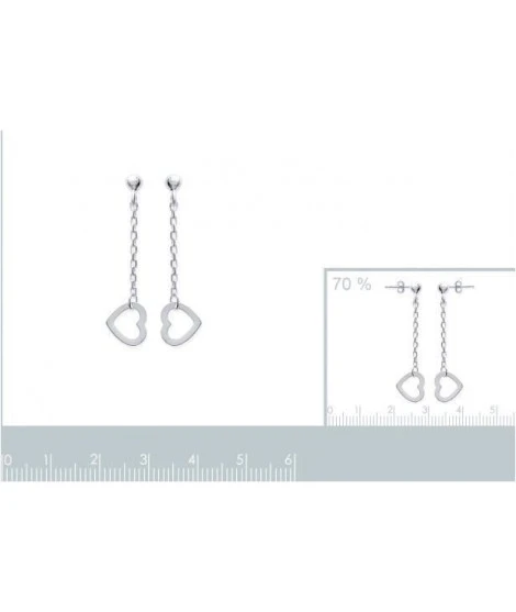 Boucles d’oreilles pendantes en argent 925/000, coeur. Poids d’argent : 1,22 gramme. Hauteur : 34 mm. LivrĂ©es dans leur jolie pochette.