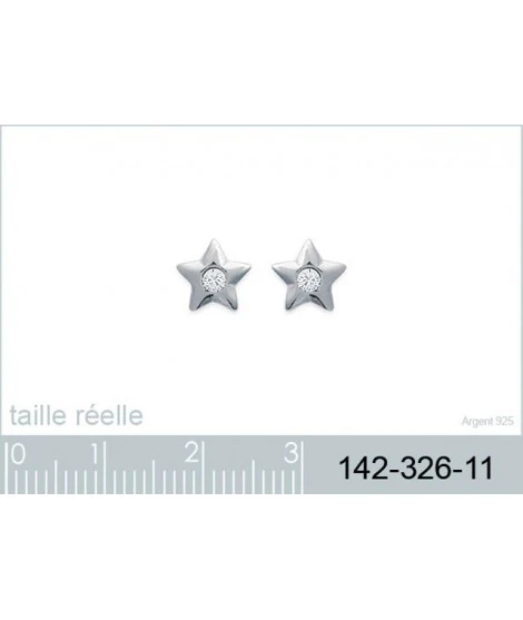Boucles d’oreilles en forme d’Ă©toiles, en argent 925/000, avec un joli cristal blanc brillant au centre. Etoile : 7 mm de cĂ´tĂ©. Poids d’argent : 0,41 gramme. LivrĂ©es dans leur jolie pochette en organza.