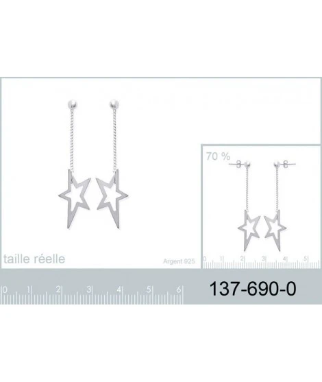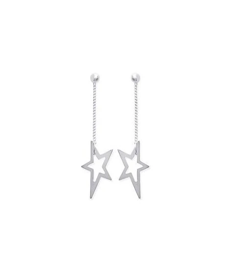 Boucles d’oreilles pendantes en argent 925/000. 1 Ă©toile par boucle, motif asymĂ©trique et tendance. Poids d’argent : 1,18 gramme. Hauteur : 40 mm. LivrĂ©es dans leur jolie pochette en organza.