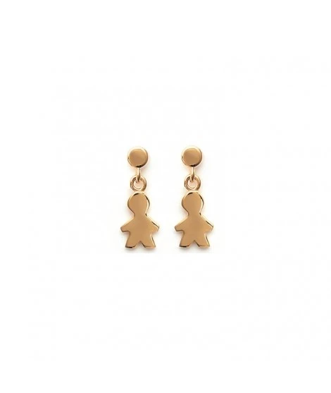 Boucles d’oreilles en plaqué or garanti 10 ans. Motif garçons. Hauteur totale : 20 mm. Largeur : 8 mm. Livrées dans leur jolie pochette.