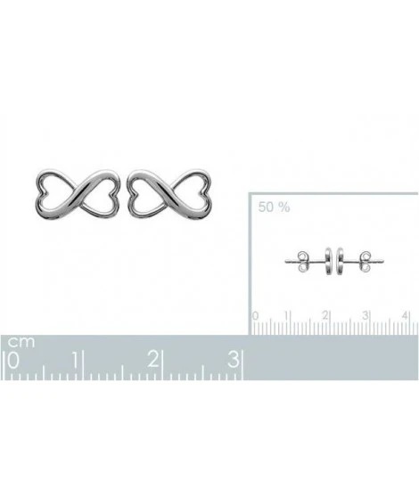 Boucles d’oreilles en argent rhodiĂ©, signe infini formĂ© par 2 coeurs. Largeur : 11 mm. Hauteur : 6 mm. Coup de coeur ! LivrĂ©es dans leur jolie pochette.