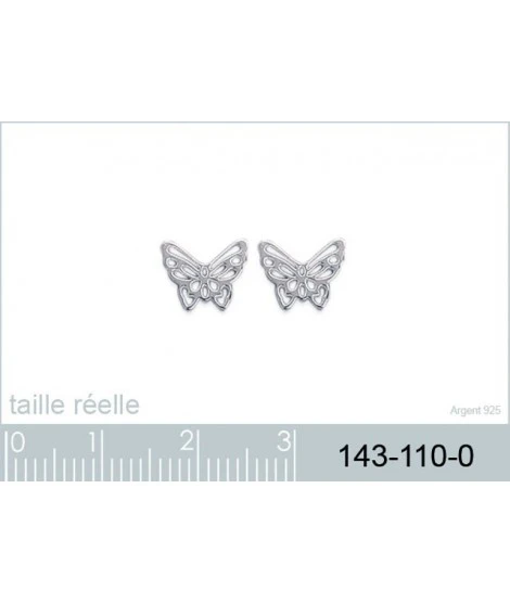 Boucles d’oreilles en argent 925/000 en forme de jolis papillons ajourĂ©s. Dimensions : 11 x 9 mm. Poids d’argent : 0,63 gramme. LivrĂ©es dans leur jolie pochette en organza.