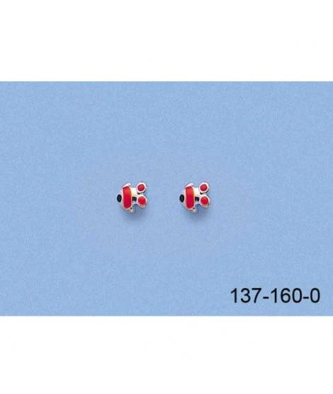 Boucles d’oreilles « poissons » en argent 925/000 et Ă©mail de couleur. Fermoir tige/poussette.