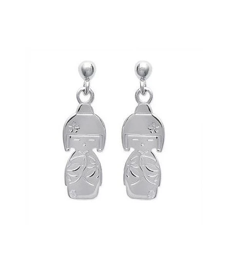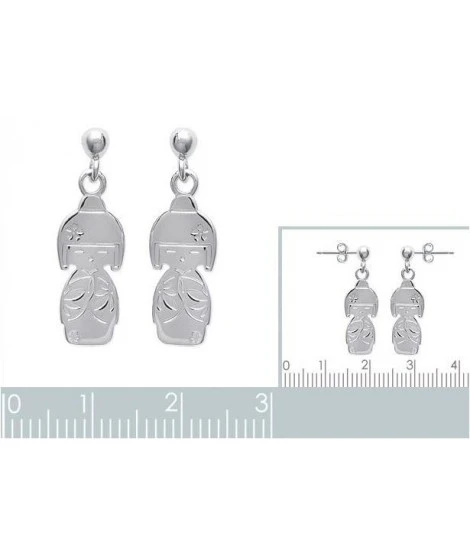 Boucles d’oreilles en argent 925/000, jolie poupée chinoise. Hauteur totale : 24 mm. Largeur : 7 mm. Poids d’argent : 2,59 grammes. Livrées dans leur jolie pochette.
