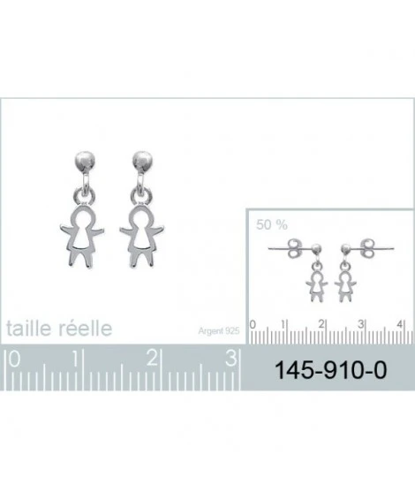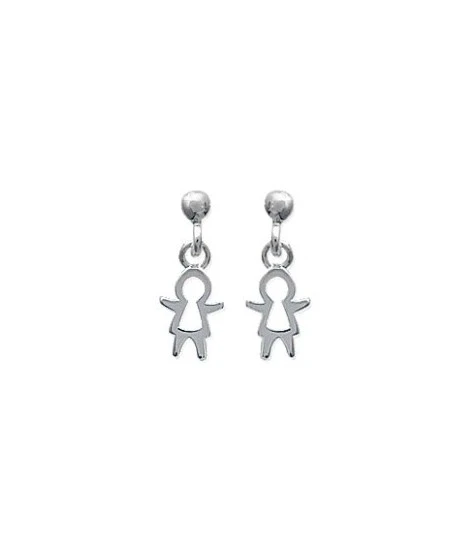 Boucles d’oreilles en argent 925/000 avec 2 silhouettes. Fermoir tige / poussette. Hauteur : 14 mm. Largeur : 6 mm. Poids d’argent : 0,98 gramme. LivrĂ©es dans une jolie pochette en organza prĂŞte Ă offrir. Disponible en bracelet et collier assortis.