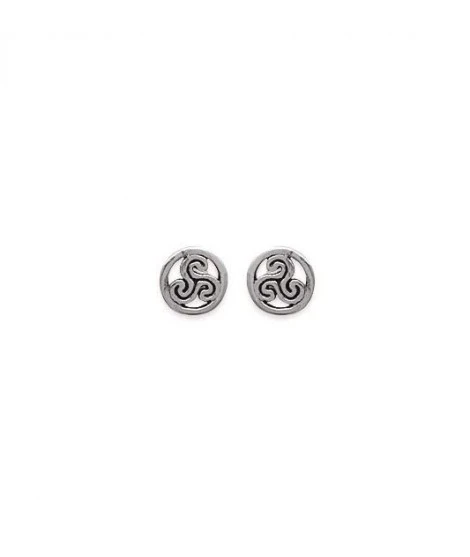 Boucles d’oreilles avec joli triskel dans un cercle. Diamètre : 6 mm. Symbole Bretagne, celte, celtique. Poids d’argent : 0,85 gramme. LivrĂ©es dans leur jolie pochette.