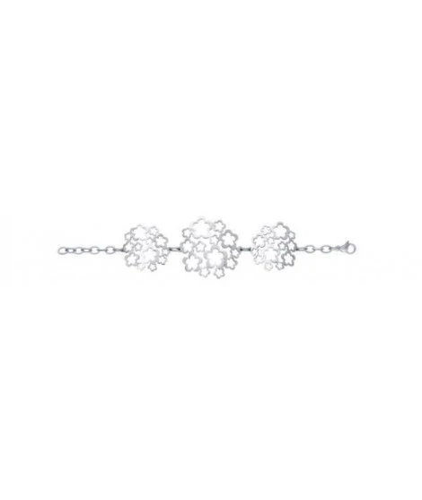 Bracelet en acier, composé de 3 fleurs. Fermoir mousqueton. Longueur : 19 cm. Largeur : 45 mm. Livré dans sa jolie pochette organza.