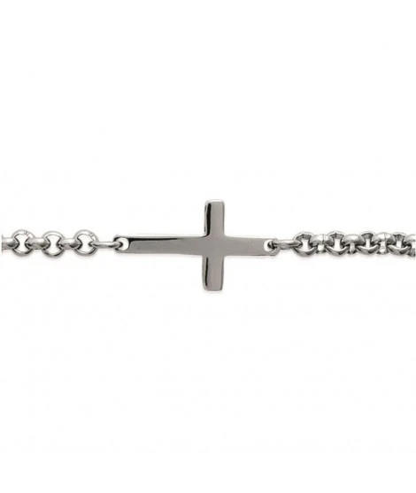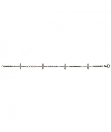 Bracelet en acier très solide, composé de chaine et de 4 croix. Fermoir mousqueton. Longueur : 18 cm. Livré dans sa jolie pochette.
