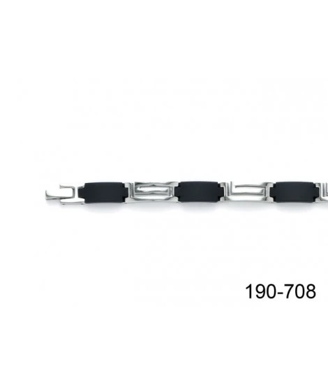 Bracelet pour homme en acier et caoutchouc noir. Longueur : 21 cm. Largueur : 8 mm. Fermoir plat. Livré dans sa jolie pochette.