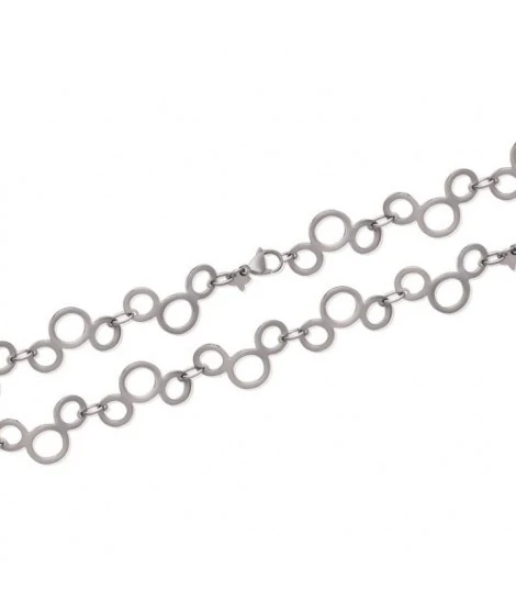 Bracelet en acier au look très moderne. Fermoir mousqueton. Longueur : 19 cm. Largeur : 20 mm. Livré dans sa jolie pochette parfumée en organza. Un cadeau abordable et du plus bel effet !