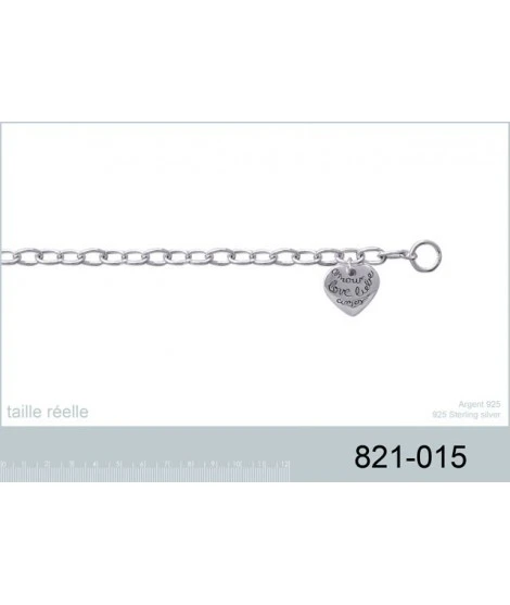 Superbe bracelet Ă©pais en argent 925/000 avec la gravure « amour love liebe amor » en noir sur un pendentif en forme de coeur 20 x 20 mm. Gravure identique sur le recto et le verso. Fermoir cabillaud. Longueur : 19 cm. Largeur : 7 mm. Poids d’argent : 15,48 grammes. LivrĂ© dans sa jolie pochette en organza prĂŞte Ă offrir. Une bien belle preuve d’amour.