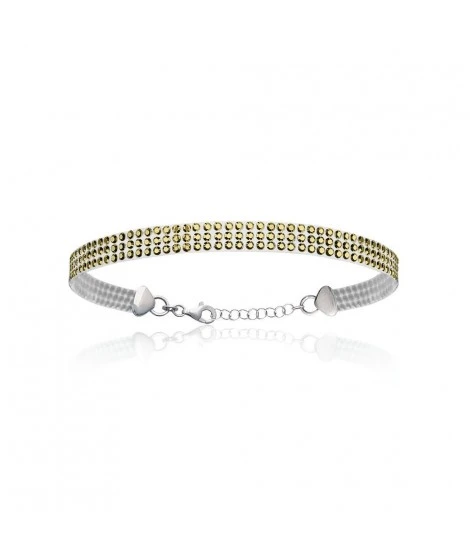 Bracelet souple avec fermoir en argent rhodiĂ© et cristal dorĂ©. Longueur : 16 cm + chaine 3 cm. Largeur : 6 mm. Poids d’argent : 2,61 grammes. LivrĂ© dans sa jolie pochette.