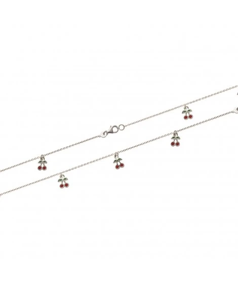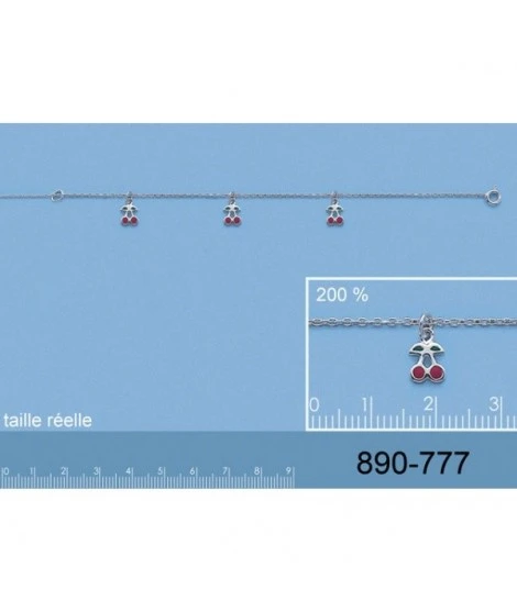 Bracelet en argent 925/000 et Ă©mail de couleur. Fermoir anneau ressort. Anneau de rappel Ă 13 cm. 3 pendentifs cerises. Longueur : 16 cm. Poids d’argent : 2,09 grammes. Pensez Ă regarder les boucles d’oreilles assorties. LivrĂ© dans sa jolie pochette en organza.