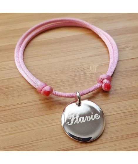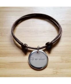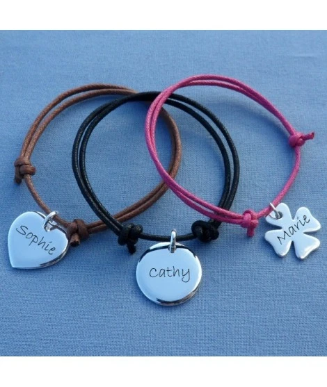 Bracelet composĂ© d’un pendentif personnalisĂ© gravĂ© (mĂ©daille ronde, coeur ou trèfle) en argent ou plaquĂ© or