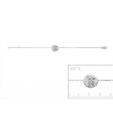 Bracelet en argent rhodiĂ©, chaĂ®ne et fermoir mousqueton. Jolie mĂ©daille ronde 14 mm style galet, avec mignon petit couple d’amoureux gravĂ© en noir, coeur et soleil. Longueur : 18 cm. Anneau de rappel Ă 16 cm pour les poignets fins. LivrĂ© dans sa jolie pochette. Ce bracelet est vraiment adorable !