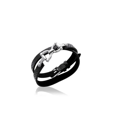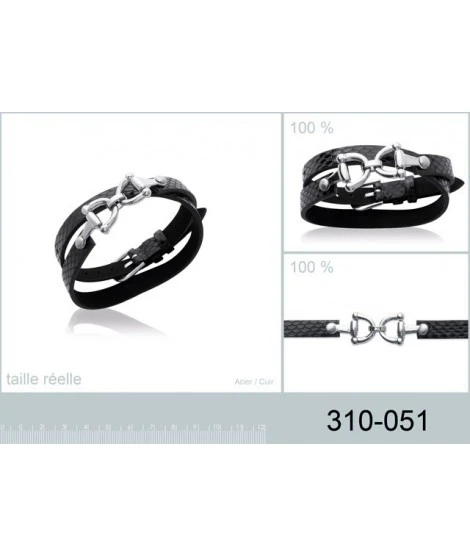 Absolument magnifique ! Bracelet en cuir noir véritable et acier thème équitation. A porter en faisant 2 tours sur le poignet. Longueur : 38 cm environ. Fermoir ceinture. Livré dans sa jolie pochette en organza prête à offrir.