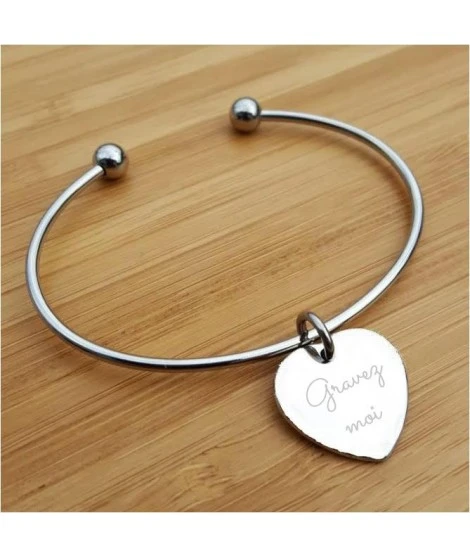 Bracelet avec la gravure de votre choix, composĂ© d’un demi jonc avec billes soudĂ©es, et d’un joli pendentif en forme de coeur Ă©pais et lĂ©gèrement bombĂ©. Le coeur mesure 20 mm de cĂ´tĂ©. Le jonc mesure 61 mm Ă l’intĂ©rieur en largeur. LivrĂ© dans sa jolie pochette.