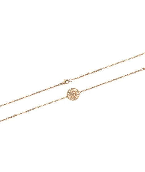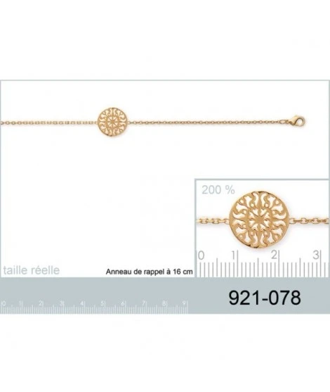Bracelet en plaqué or garanti 10 ans avec jolie médaille ajourée de style « dentelle ». Fermoir mousqueton. Longueur : 18 cm. Largeur : 18 mm. Livré dans sa jolie pochette en organza prête à offrir. Disponible également en argent 925/000.