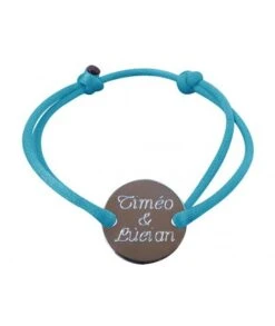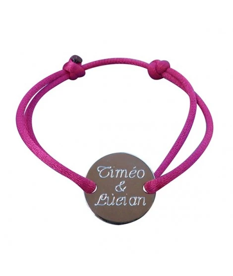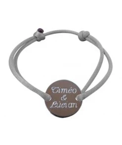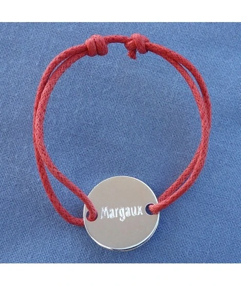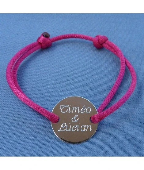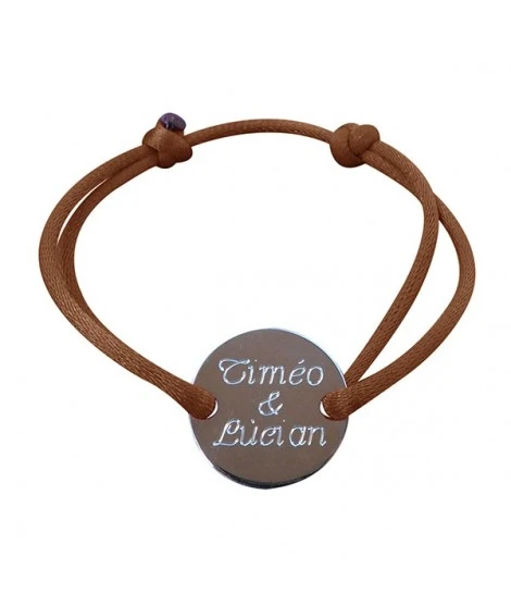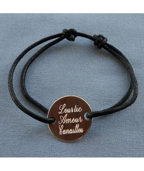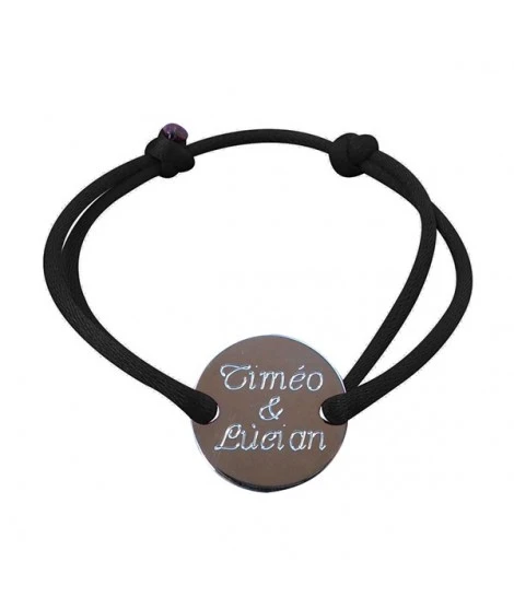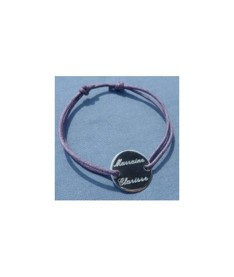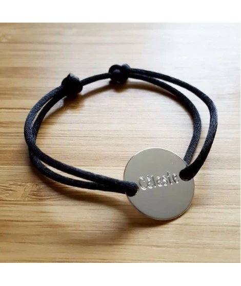 ★ Bracelet sur cordon composé d’une médaille ronde 20 mm en argent massif 925/000 avec 2 trous.
