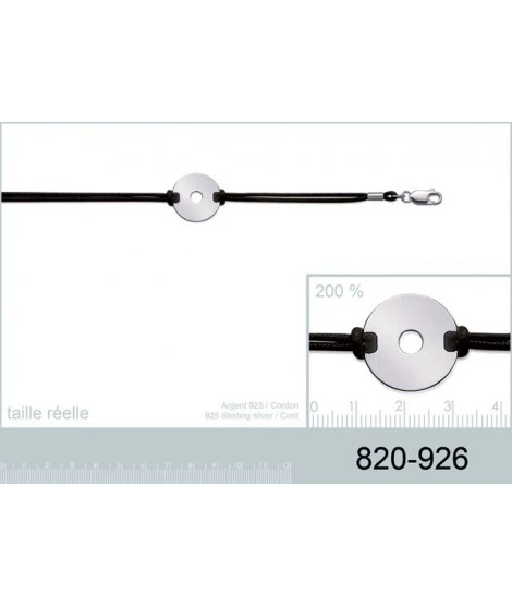 Bracelet sur cordon noir en coton, disque jeton en argent 925/000 sur le devant avec gravure sur le recto comprise dans le prix. Fermoir mousqueton argent 925/000. Poids d’argent : 3,40 grammes. Diamètre : 20 mm. Longueur : 18 cm. LivrĂ© dans sa jolie pochette en organza. Pas de changement de cordon possible sur ce modèle.