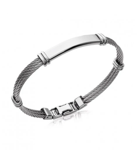 Bracelet pour homme en acier inoxydable, à personnaliser avec la gravure de votre choix sur le recto. Diamètre : 66 mm. Largeur : 6 mm. Livré dans sa jolie pochette.