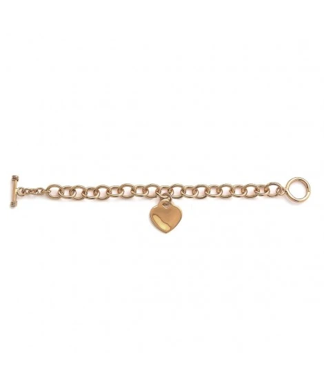 Bracelet épais composé d’une chaîne à grosses mailles ovales et d’un joli coeur, à graver avec le texte de votre choix. Matière : plaqué or garanti 10 ans. Longueur : 19 cm. Fermoir cabillaud. Livré dans sa jolie pochette.