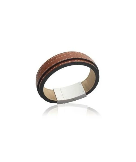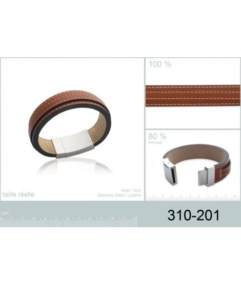 Superbe bracelet en cuir marron, surpiqĂ»re blanche. Très belle finition. Fermoir large en acier. Il suffit d’appuyer sur le dessus pour l’ouvrir. Longueur : 19,5 cm. Largeur : 2 cm environ. LivrĂ© dans sa jolie pochette en organza. Magnifique !