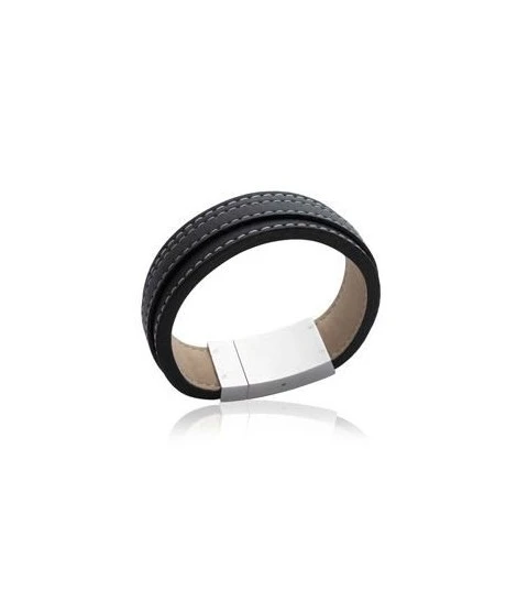Superbe bracelet en cuir noir, surpiqĂ»re blanche. Très belle finition. Fermoir large en acier. Il suffit d’appuyer sur le dessus pour l’ouvrir. Longueur : 19,5 cm. Largeur : 2 cm environ. LivrĂ© dans sa jolie pochette en organza. Magnifique !