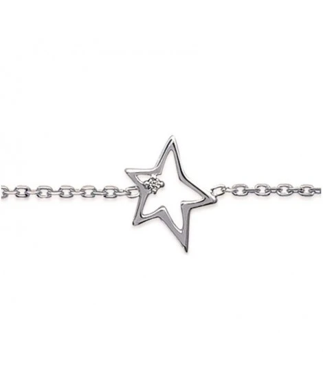 Bracelet en argent rhodié et oxydes de zirconium. Longueur : 18 cm. Etoile : 12 mm. Livré dans sa jolie pochette organza.