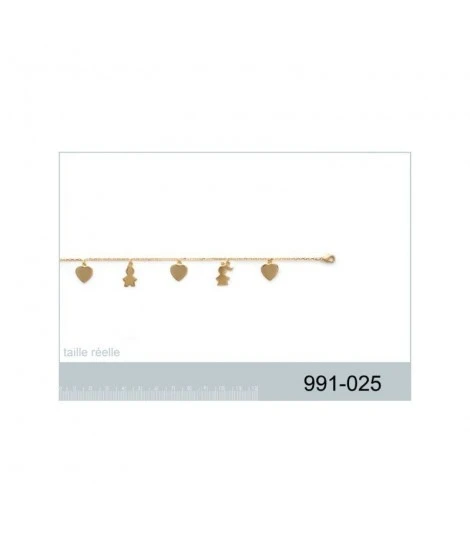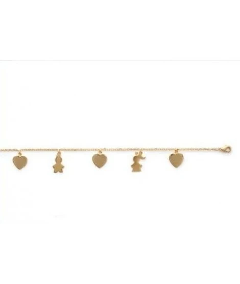 Bracelet en plaqué or jaune, composé de 5 breloques : 1 fille, 1 garçon et 2 coeurs.