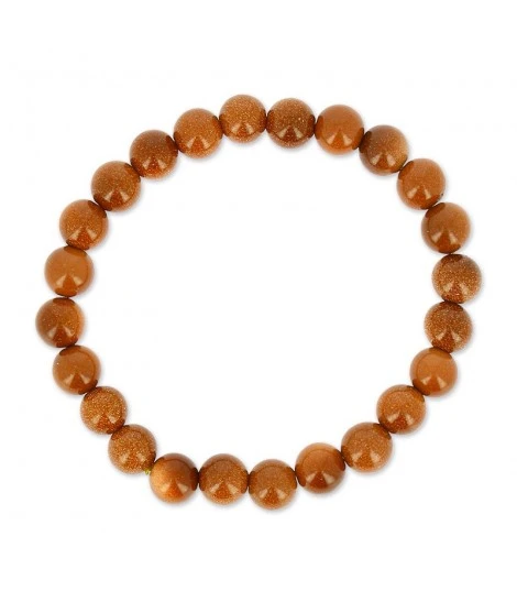 Bracelet sur fil élastique, en perles de pierres gemmes, goldstone. Chaque perle mesure 8 mm de diamètre. Choisissez dans les options si vous préférez en pendentif, une médaille ronde 20 mm ou un coeur, en acier, argent 925/000 ou plaqué or garanti 10 ans. Gravure sur le recto comprise dans le prix. Chaque bracelet est unique et peut comporter des irrégularités. Livré dans sa jolie pochette.