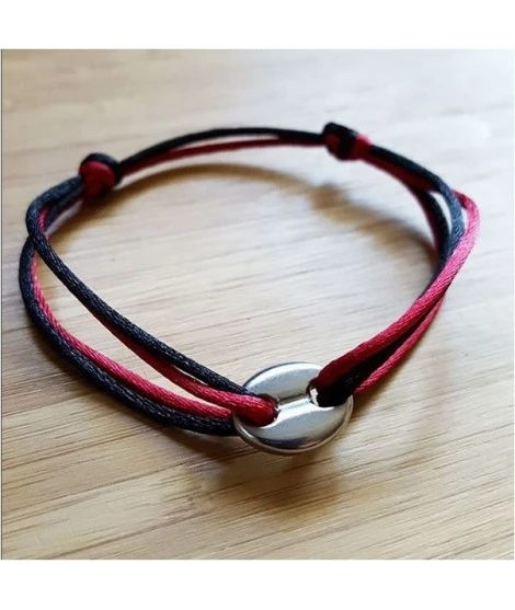 Bracelet mixte composĂ© d’un joli grain de cafĂ© en acier. Cordon double couleur ajustable par noeuds coulissants, couleurs au choix. Dimensions du grain de cafĂ© : 11 x 14 mm. LivrĂ© dans sa jolie pochette en organza prĂŞte Ă offrir.