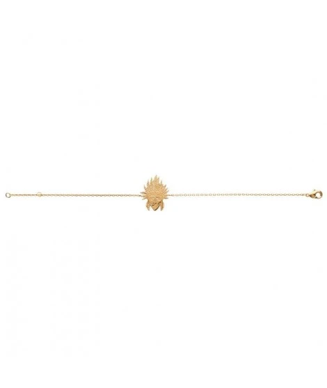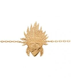 Bracelet avec superbe indien, en plaqué or garanti 10 ans. Longueur : 18 cm, avec un anneau de rappel à 16 cm pour les poignets fins. La tête mesure 18 x 21 mm. Fermoir mousqueton. Livré dans sa jolie pochette.