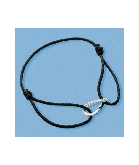 Bracelet sur cordon de couleur au choix. Fermeture par 2 noeuds coulissants. Symbole en argent rhodiĂ© en forme de torsade signe infini avec plusieurs oxydes de zirconium. Magnifique ! LivrĂ© dans sa jolie pochette en organza prĂŞte Ă offrir. Vous l’aimez Ă l’infini ? DĂ®tes-le-lui avec ce bijou.