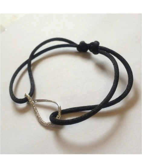 Bracelet sur cordon, couleur au choix, avec joli symbole de l’infini en argent dĂ©corĂ© d’oxydes de zirconium. Infini :22 x 13 mm. Ajustable par 2 noeuds coulissants. Symbole d’amour Ă©ternel, un joli cadeau pour celle que l’on aime. LivrĂ© dans sa jolie pochette organza.