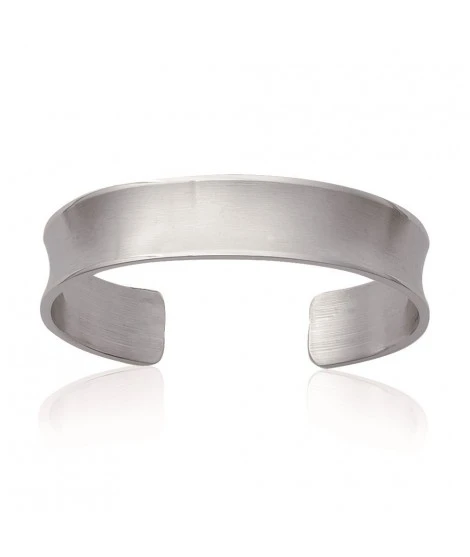 Bracelet manchette rigide en acier. Première qualité. Largeur : 15 mm. Largeur intérieure : 61 mm. Livré dans sa jolie pochette.