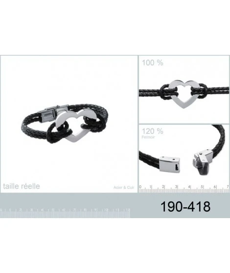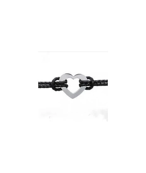 Joli bracelet pour femme en cuir tressé noir avec un coeur en acier au centre.