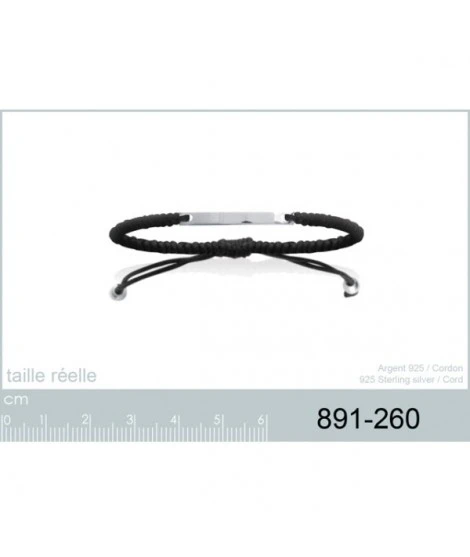 Bracelet sur cordon noir, fermeture par noeud coulissants, et 2 perles qui finissent les 2 cordons, en argent 925/000. Plaque Ă graver : 2,6 x 0,3 cm. Gravure sur le recto comprise dans le prix. Nous vous conseillons sur ce modèle l’Ă©criture 2 (US Block) en majuscules pour une meilleure lisibilitĂ©. LivrĂ© dans sa jolie pochette. Pas de changement de cordon offert 1 fois par an sur ce modèle.