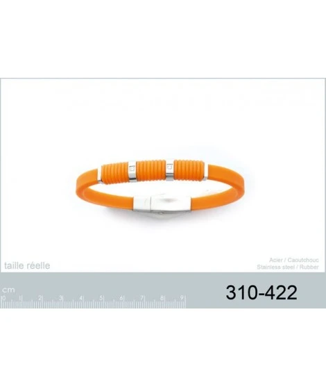 Bracelet en caoutchouc orange, acier et 2 jolis oxydes de zirconium bien brillants. Fermeture sĂ©curisĂ©e. Longueur : 18,5 cm. Osez les couleurs de l’Ă©tĂ© ! LivrĂ© dans sa jolie pochette en organza.