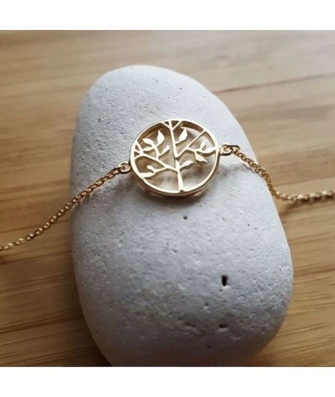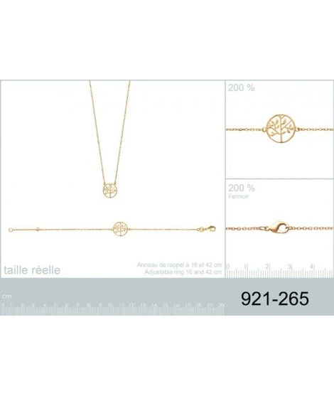 Très bel effet pour ce bracelet ou collier arbre de vie. Plaqué or garanti 10 ans. Diamètre : 13 mm. Longueur : 18 mm (bracelet) ou 45 cm (collier). Fermoir mousqueton. Livré dans sa jolie pochette en organza.