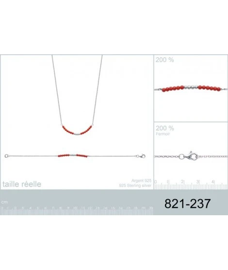 Bracelet ou collier tout en finesse pour beaucoup de classe, constituĂ© d’une chaĂ®ne et de 4 perles en argent et 14 perles couleur rouge. Bracelet : 18 cm et 1,2 gramme d’argent. Collier : 45 cm et 2,50 grammes d’argent. Fermoir mousqueton. Offrez-vous la parure pour un effet plein de charme. LivrĂ© dans sa jolie pochette en organza.
