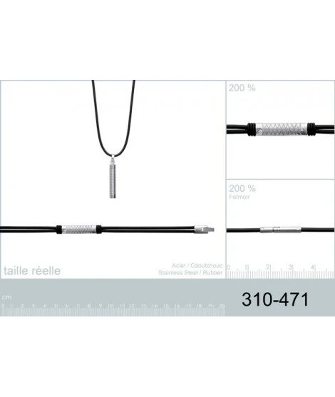 Bracelet 21 cm pour collier, acier et caoutchouc noir pour homme. Fermoir acier. Très belle qualité. Livré dans sa jolie pochette.