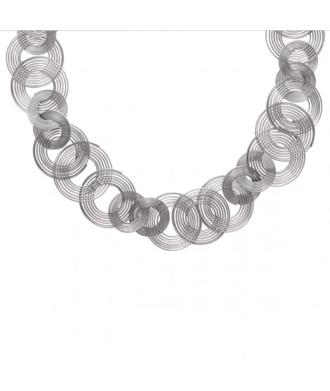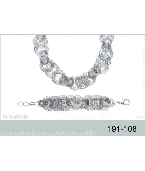 Bracelet 19 cm ou collier 45 cm, en acier modèle « Bubble ». Largeur des gros anneaux : 32 mm. Top qualité. Très chic pour sortir le soir avec une tenue rafinée. Profitez de son petit prix pour vous offrir la parure. Livré dans sa jolie pochette.