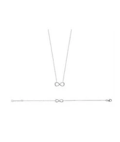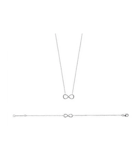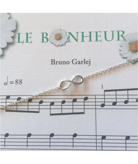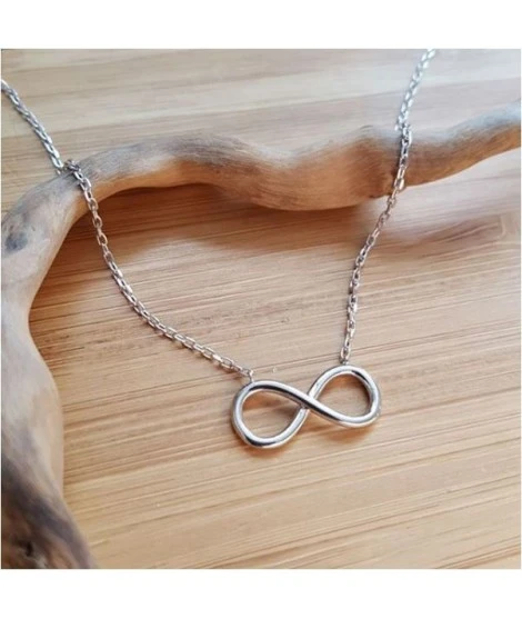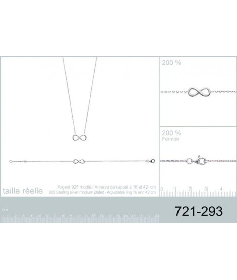 Bracelet ou collier en argent 925/000 avec joli signe infini. Anneau de rappel pour porter le bijou au plus court. Bracelet : 18 cm, 1,13 gramme d’argent. Collier : 45 cm, 2,14 grammes d’argent. LivrĂ© dans sa jolie pochette organza.
