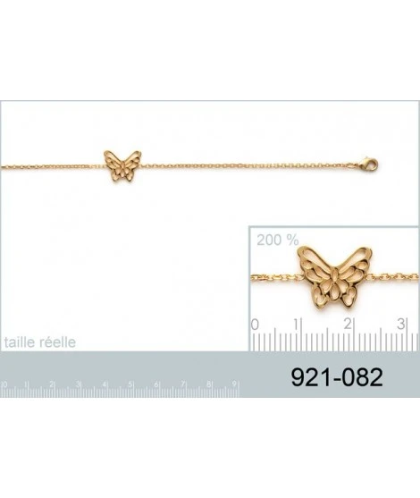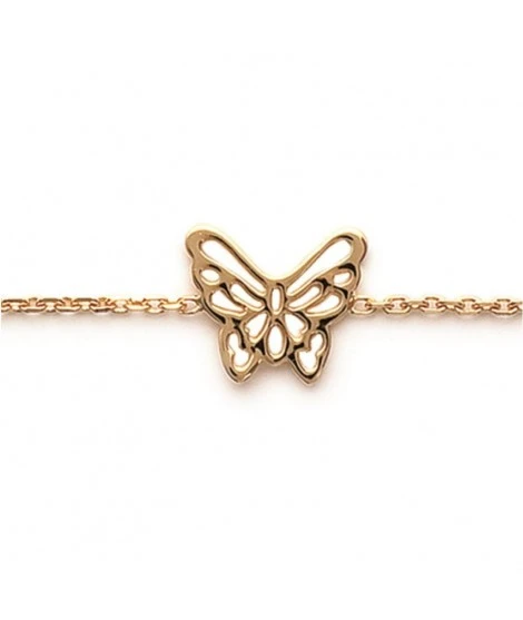 Bracelet en plaqué or garanti 10 ans avec superbe papillon stylisé. Longueur : 18 cm. Anneau de rappel pour les poignets fins. Livré dans sa jolie pochette en organza prête à offrir.