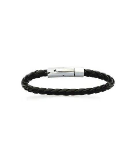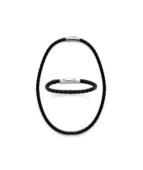 Les hommes portent de + en + de bijoux. Voici un bracelet en acier et cuir noir tressĂ© vĂ©ritable qui saura en sĂ©duire plus d’un ! Diamètre : 66 mm. Longueur position fermĂ© : 21 cm. Super qualitĂ©. Disponible Ă©galement en version collier. LivrĂ© dans sa jolie pochette organza prĂŞte Ă offrir.
